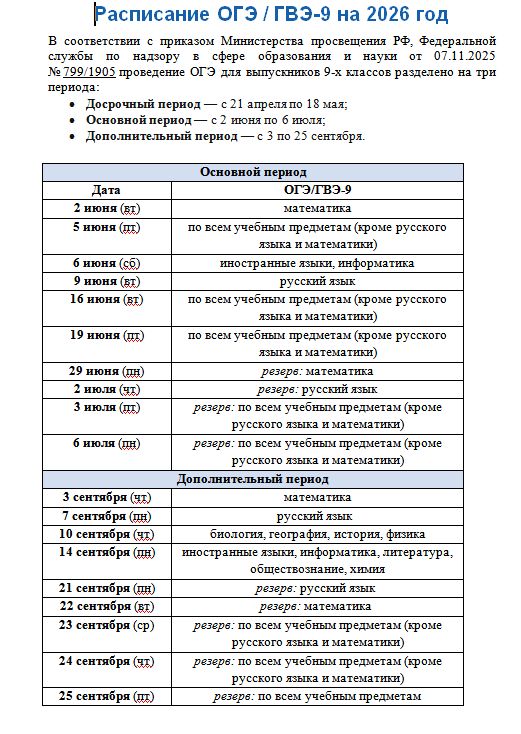 Основные сведения о государственной итоговой аттестации выпускников 9 классов в 2026 году